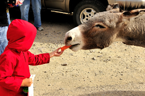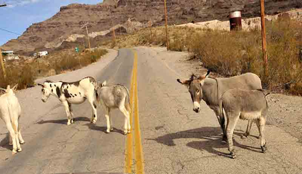 Once you cross over Sitgreaves Pass Oatman is not far down the hill. But be aware of the donkeys as you motor towards town, they not only roam free, they have the right of way. They love standing in the road. We really think they enjoy making people look like a relative of theirs. Get it?