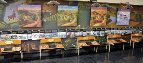 Appropriately placed near the door which leads visitors to the John Deere Store is the children's educational area. Here kids of all ages can follow the path of corn. From planting to harvesting to being made into food products. There is even a wooden cow that will stand still as she is being milked.