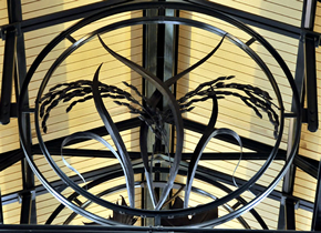 Be sure to look up at the rafters before heading to the store. Check out the several farm themed art work placed along the center line of the roof.