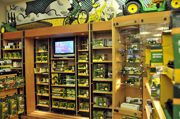 The side door next to the wooden cow will lead directly to the John Deere Store where anything and everything bearing the John Deere Logo can be found. Trinkets, kitchen ware, garden accessories, clothing for all ages and of course, toys and then more toys.