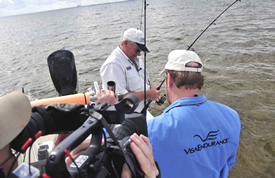 Once the fish was let go, O'Neill and Captain Keith did a segment in which Keith showed O'Neill, Mike and the TV audience how he ties the bait to the barbless hook while Sandy kept right on fishing. Just as Captian Kieth was wrapping up his demostration Sandy called out "I got one"